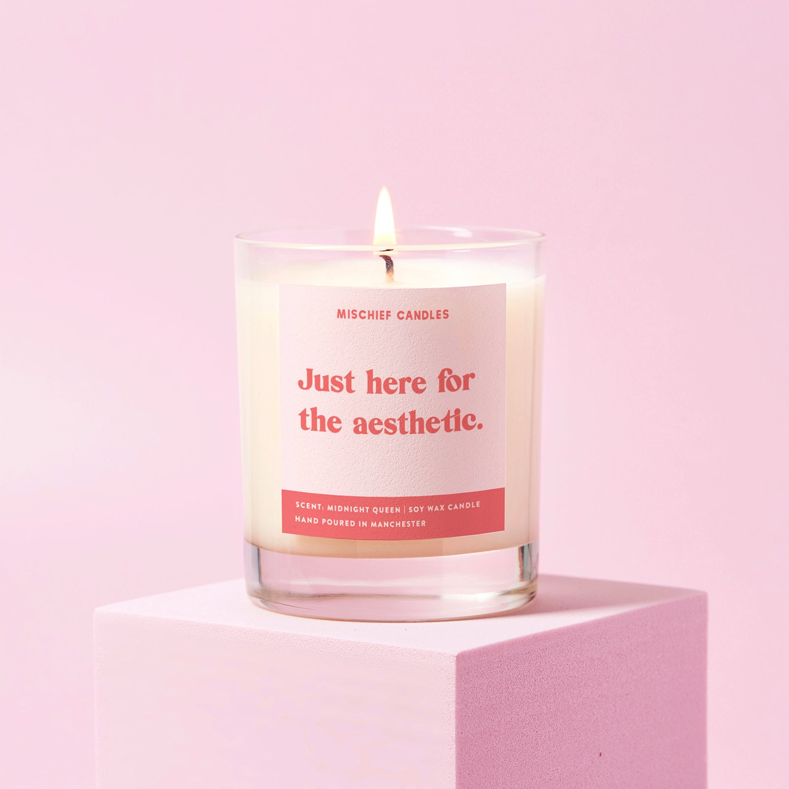 For the friend who curates their life like a Pinterest board. This candle wasn’t made to be practical - it’s made to look incredible on your shelf, next to that book you never read. With a choice of delicious scents and an Instagram-worthy design, it’s the definition of form over function. Light it if you must, but honestly...it already did its job by looking this good. The statement label reads ‘Just here for the aesthetic’ in our signature red and pink style.